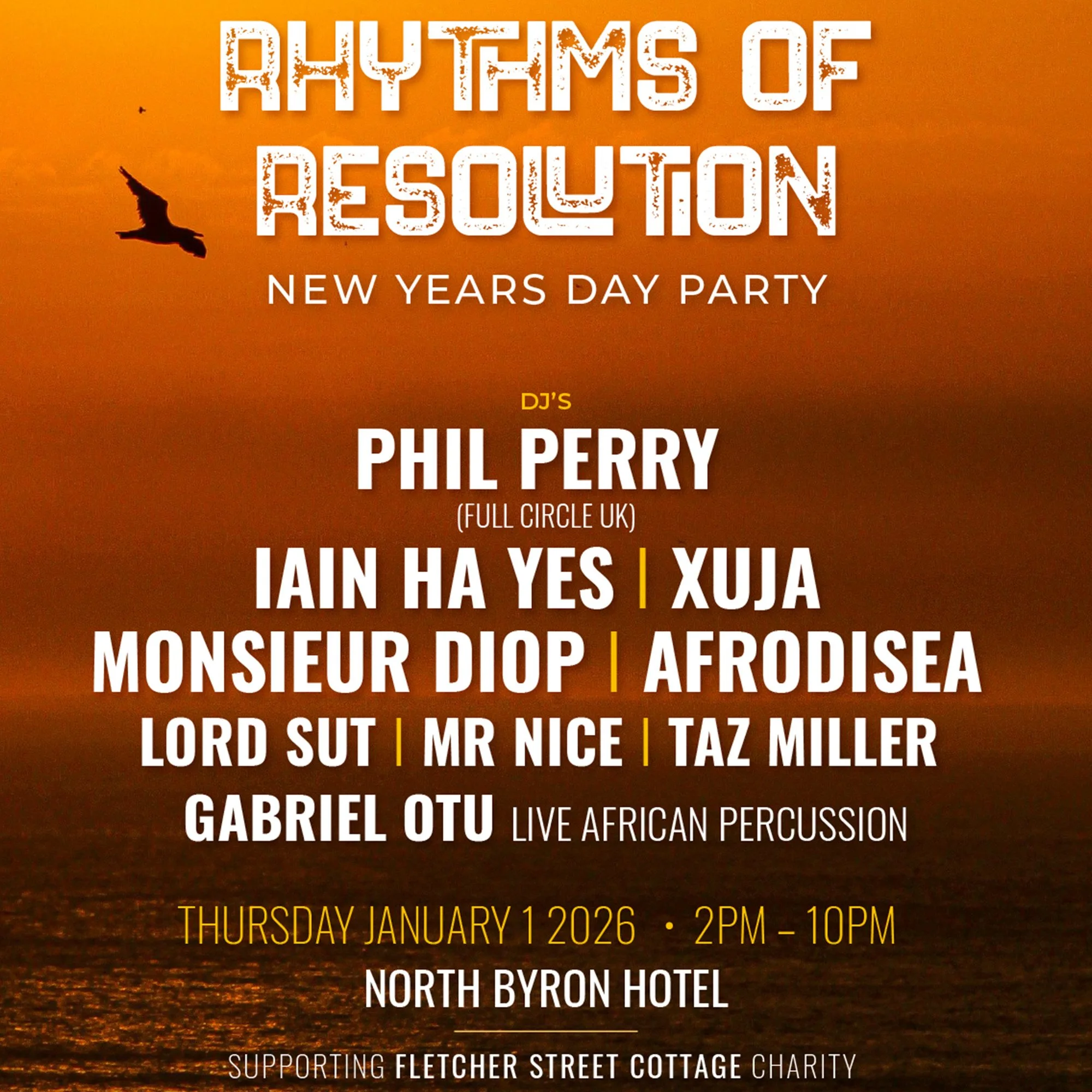 From 2pm till 10pm, the lush outdoor grounds of North Byron Hotel will transform into a sun-drenched playground of sound, featuring eight exceptional DJs includes Phil Perry - a pioneer of the UK house movement and founder of the iconic Full Circle in London, alongside some of the Northern Rivers’ finest selectors: Iain Ha Yes, XUJA, Monsieur Diop, Lord Sut, Afrodisea, Mr Nice, and Taz Miller. Joined by vibrant live African percussion of Gabriel Otu (Happy Africa).